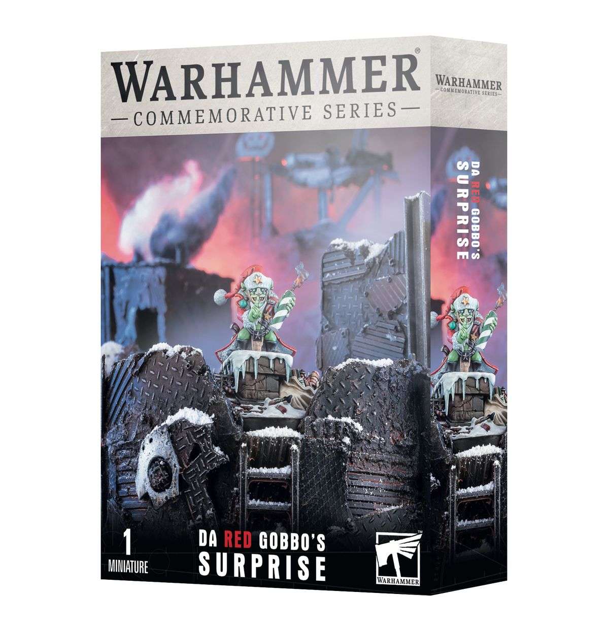 This multipart plastic kit builds Da Red Gobbo’s Surprise, depicting your favourite mischievous grot perched atop a scenic base. His bag of goodies is open, and some of his gifts have slipped out – thankfully, more welcome than the big bombshell he’s about to drop. Don’t ruin his surprise!