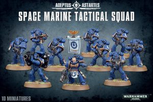 There are 10 unique boltguns, a gravgun, a meltagun, a plasma gun, a flamer, a missile launcher (including backpack and spare missiles). The squad Sergeant can be armed with a combination of power fist, power sword or chainsword, and plasma pistol, grav pistol or bolt pistol. You can also make any 1 of the following combi-bolters – combi-grav, combi-melta, combi-plasma, or combi-flamer. The squad can also be armed with a melta bomb, a selection of combat knives, and enough Frag and Krak grenades to arm each Space Marine.