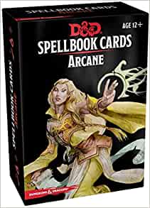 The Spellbook cards are an invaluable resource for both players and Dungeon Masters. With these spell details at their fingertips, they can save time, keep the action up, and avoid stalling the game by flipping through books. Each deck contains laminated cards that players and Dungeon Masters can use as a quick reference resource during Dungeon & Dragons tabletop play. There are currently eight decks (each sold separately): Arcane Spell Deck (For any class that utilizes arcane cantrips and spells like wizards and sorcerers), Bard Spell Deck, Cleric Spell Deck, Druid Spell Deck, Paladin Spell Deck, Martial Powers & Races Deck (Includes spell-like racial abilities, Monk and Barbarian spell-like abilities, and fighter maneuvers), Ranger Spell Deck, Xanathars Guide to Everything Spell Deck (Contains spells found in the D&D supplement, Xanathars Guide to Everything)